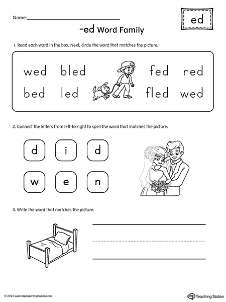 Strengthen spelling skills while having fun with this -ed word family word search worksheet. Students will practice decoding letter sounds to build and read CVC or CCVC words.