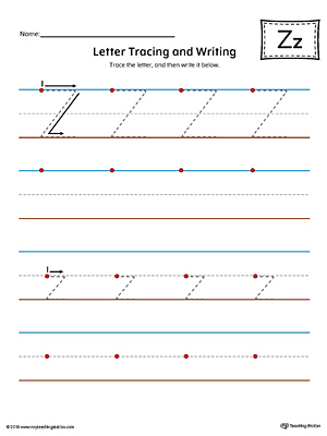 The How to Write Lowercase Letter Z Printable Poster in Color contains step-by-step instruction on how to form the lowercase letter Z using the continuous stroke method. Use the poster as a guide when illustrating how to write the letter.