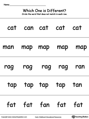 Challenge your preschooler and kindergartner with identifying which word is different. Kids read each word ending in "EN" and circle the one different from the others.