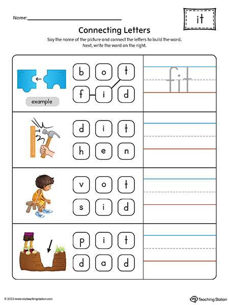 Use the IT Word Family worksheet to help children learn to read by blending letter sounds and forming words that match the pictures. Students practice developing reading and spelli...
