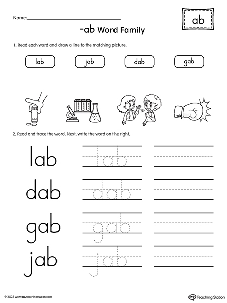 In the AB Word Family Match Picture to Words Worksheet, children practice reading and circling words that have a common pattern. By learning these patterns, children can quickly de...
