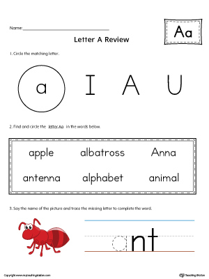 Practice tracing and writing the uppercase and lowercase letter A in the Letter A Tracing and Writing Printable Worksheet in Color.