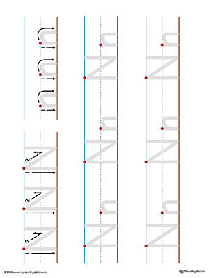 Letter N Tracing and Writing Printable Worksheet (Color)